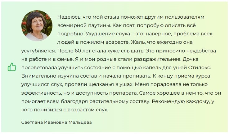 Большинство аналогичных средств решают лишь отдельные проблемы, тогда как Отилокс одновременно снижает шум, звон и ощущение заложенности в ушах, улучшает микроциркуляцию и поддерживает нервную систему. Натуральный состав и отсутствие синтетических добавок делают его безопасным для регулярного применения с минимальным риском побочных эффектов. Именно поэтому, несмотря на наличие заменителей, Отилокс остаётся оптимальным выбором для людей, стремящихся сохранить здоровье слуха и комфорт при повседневных нагрузках.