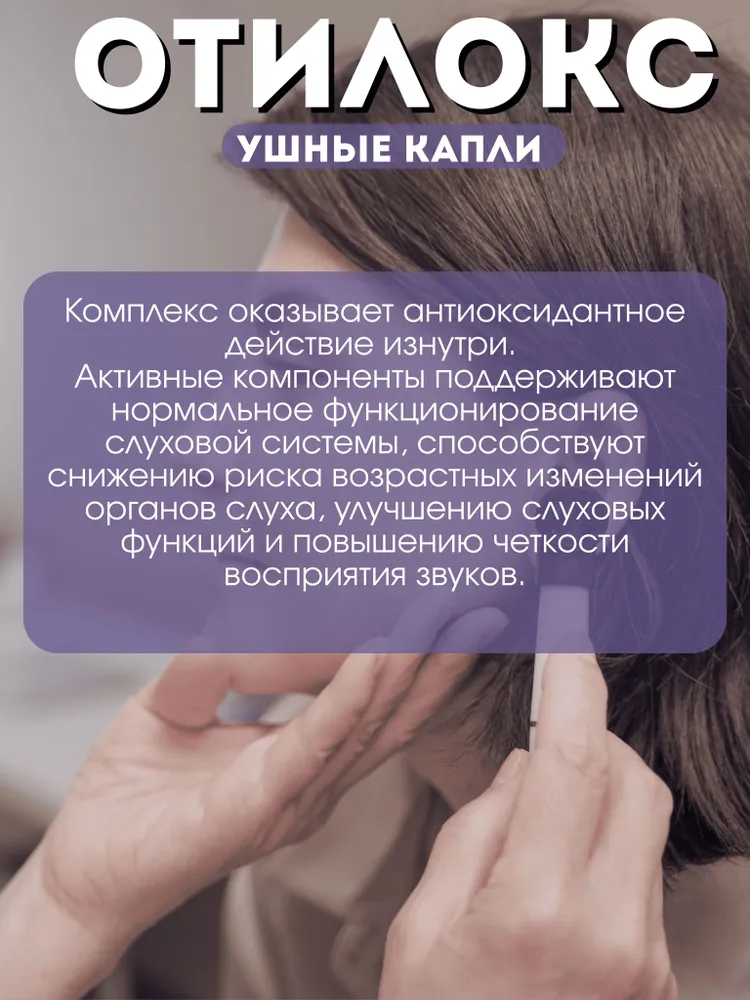 Таким образом, Отилокс обеспечивает всестороннюю поддержку слуховой системы, помогая сохранить здоровье ушей и их функциональность в условиях современных нагрузок и возрастных изменений.